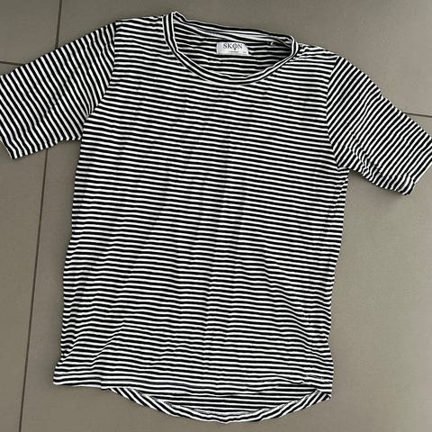 T-shirt, Isaksen, str. 36, Sort, Viscose elastan, Næsten som ny, Lækker blød t-shirt i dejligt blødt materiale. God kvalitet, der holder farve og facon. Er kulsort, lyset snyder lidt. Fine detaljer med hvid stribe ved ærmer, to knapper ved halsudskæring og kant forneden, der får den til at sidde flot.