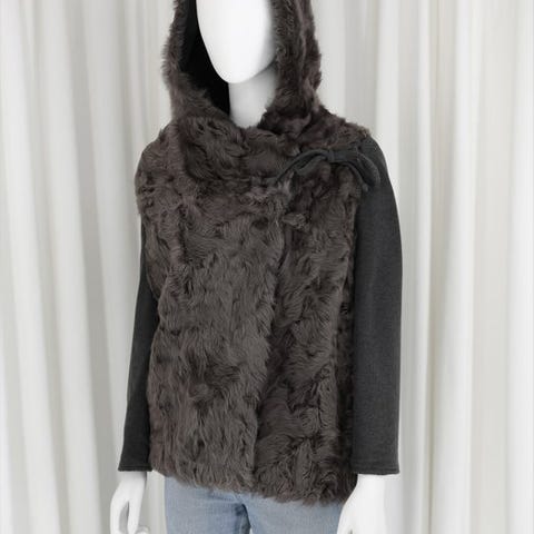 Dunjakke med kaninpels. Ny med prisskilt.