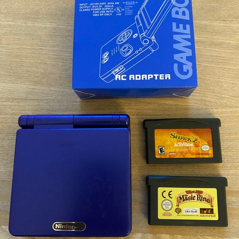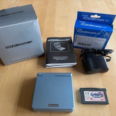 Selve konsollen er en original Nintendo Game Boy Advance SP-enhed.
