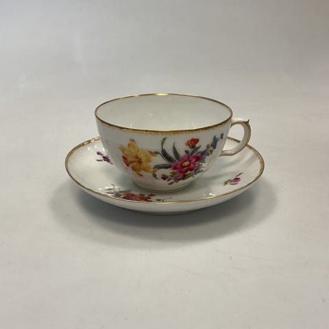 Royal Copenhagen Fuld Saksisk Blomst Sennepskop No. 1594 og Underkop No.1674 ...