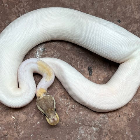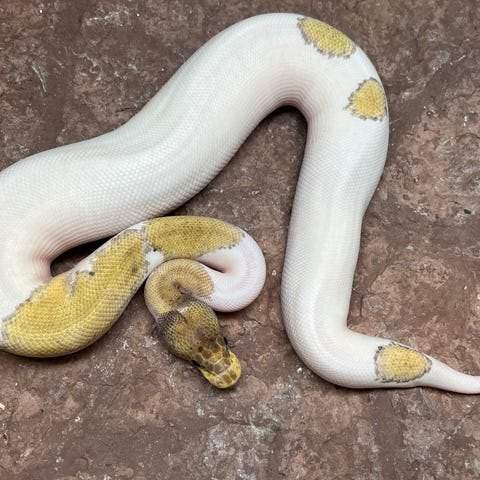 1,0/Han Pastave (Pastel Mojave) Pied Clown fra 2025. Spiser både levende og frost mus/rotter.