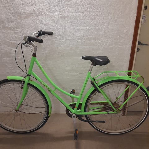 Raleigh damecykel med 52 cm stel og 28" (700c) hjul. Cyklen har lav indstigning og er egnet til kvinder. Den fremstår i hvid med matchende saddel og skærme. Udstyret omfatter bl.a. bagagebærer, kædeskærm, støtteben og fodbremse/bremser på styr (ud fra billederne). Velegnet som hverdags- og bycykel til pendling og almindelig transport.