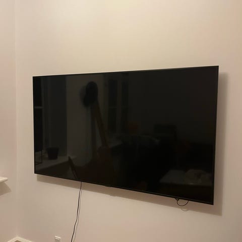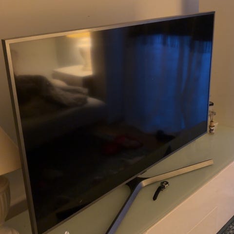 Samsung fladskærms-tv . Tv’et har tynd ramme og slankt design, som ses på billederne. Det fremstår som et smart-tv med adgang til forskellige apps og streamingtjenester via menuerne på skærmen. Velegnet til ophængning i stue eller andre rum, hvor der ønskes et væghængt tv med moderne brugerflade.