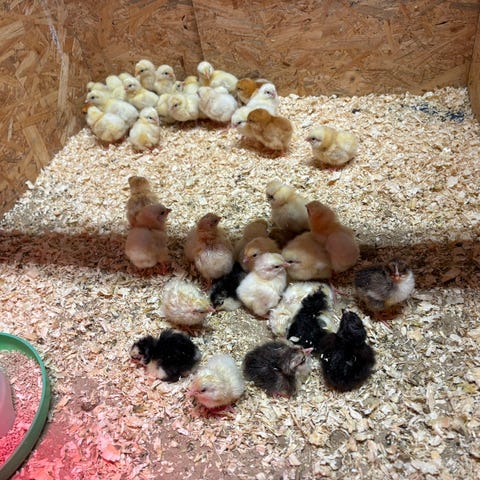 Grønlægger Kyllinger fra d. 11.02. Kryds med bl.a silverruds og engelsk Araucana.