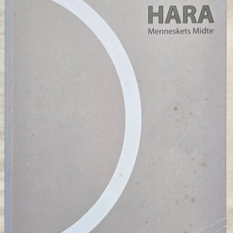 Karlfried Graf von Dürckheim Hara Menneskets Midte bog. Hardback-udgave med ensfarvet omslag og grafisk cirkelmotiv på for- og bagside. Bogen er på dansk og omhandler begrebet hara og menneskets indre centrum. Velegnet som fag- eller inspirationslitteratur inden for personlig udvikling og åndelig praksis.