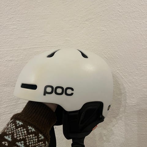 POC skihjelm i mat sort. Hjelmen har ventilationshuller i toppen og aftagelige ørebeskyttere, som ses på billederne. Justerbart spænde under hagen og fæste bagpå til skibrille. Velegnet til brug på ski eller snowboard.