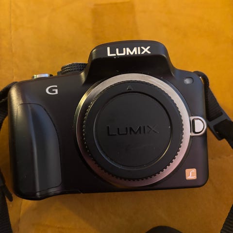 Panasonic Lumix G digitalkamera med drejelig LCD-skærm og elektronisk søger. Kameraet har en udfoldelig og roterbar skærm, som gør det muligt at tage billeder fra forskellige vinkler. Der medfølger skulderrem med Lumix G-logo. Yderligere specifikationer som opløsning, objektivtype og andre tekniske detaljer er ikke oplyst.
