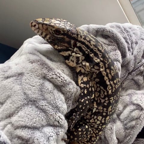 Argentine Black and White Tego. My son has moved away to college and this fascinating 3 year old little creature needs a new home