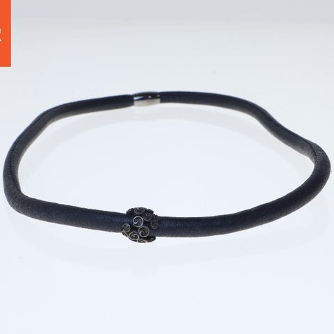 Halskæde lavet af sorte metalkæder. Designet inkluderer en række mindre kæder, der hænger ned fra den større kædekant. Halskæden har en længde på 50 cm og er velegnet til mode og dekoration.