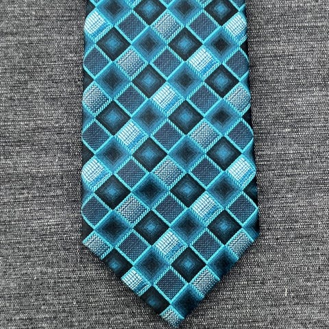 Connexion slips til mand i 100 % silke. Slips i lyseblå farve med grønne og hvide diagonale striber. Klassisk model. Velegnet til skjorter og jakkesæt i både formelle og mere afslappede sammenhænge.