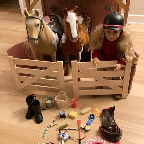 Pur generation hestestald, 2 heste, ridepige og div. tilbehør.