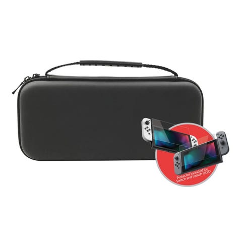 Der er et stort hovedrum med plads til dock, kabler, oplader m.m. samt op til 4 controllere. Derudover medfølger et aftageligt beskyttelsesetui til selve Switch-konsollen med plads til flere spil.