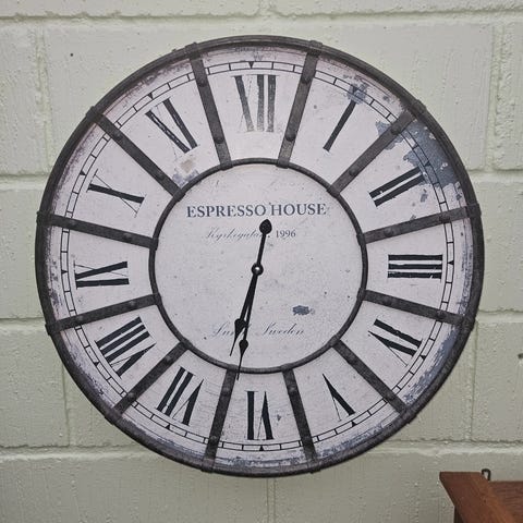 Bornholmerur angiveligt fra starten af 1800 tallet. Mørkebrunt træ. God klang. Urværk intakt.