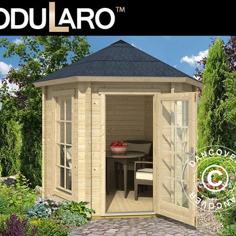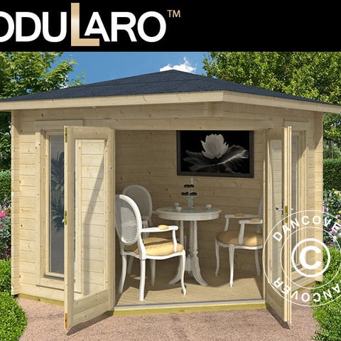 Salgsbod i smukt og holdbart nordisk gran. Boden har en stor låge i fronten, som kan foldes ned og laves om til en disk, hvor man kan præsentere varer og mødes med sine kunder. Salgsboden har en dør i siden, som kan låses. Den solide bod bliver leveret med 16 mm præfabrikerede vægelementer og 19 mm brædder til tag og gulv. Bemærk venligst, at der IKKE medfølger tagpap! Vi anbefaler, at du beskytter det ubehandlede gran med træbeskyttelse eller maling straks efter, du har samlet boden!