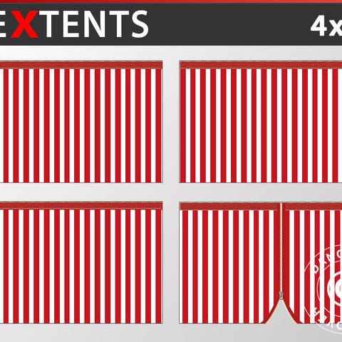 Sidevægge til foldetelt FleXtents® Xtreme Heavy Duty 4x4 m. Sættet med sidevægge indeholder 3 standard sidevægge & 1 lynlåssidevæg. Sidevæggene har stærke velcrobånd øverst og i siderne, så de nemt kan fastgøres til tagdugen og de andre sidevægge.