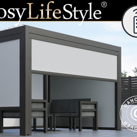 Elektrisk sidevæg til bioklimatisk pergola pavillon San Pablo, 3m, Sort