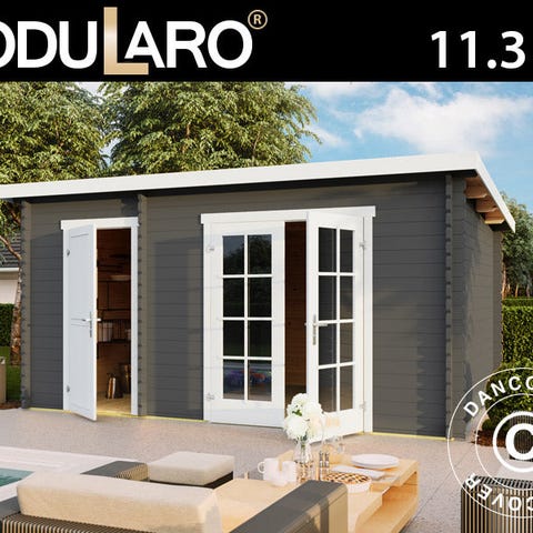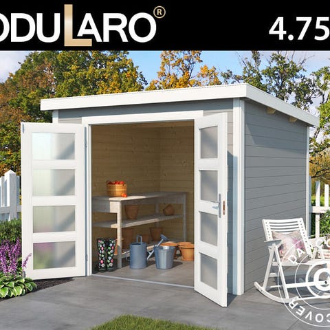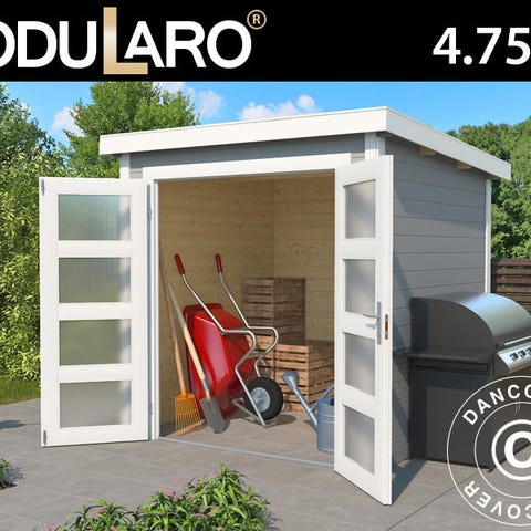 Solidt og rummeligt redskabsskur i holdbart nordisk gran. Skuret er perfekt til at sørge for, at der er styr på dine haveredskaber, plæneklipper, grill og andet udstyr, så det hele bliver opbevaret ordentligt og godt beskyttet. Skuret kan også bruges som en lille hytte eller havepavillon. Den store dobbelte dør med vinduer giver nem adgang, og desuden har skuret et fint lysindfald om dagen. Bemærk venligst, at døre og vinduer er hvide. OBS! Tagbeklædning er IKKE inkluderet. Vi anbefaler, at du undersøger det store udvalg af tagbeklædninger i dit lokale byggemarked. Modularo® er et moderne livsstilsbrand, der tilbyder holdbare kvalitetsprodukter i massivt træ og et tidssvarende design, som kan være med til at gøre dit haveliv endnu skønnere.