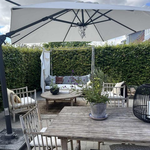 Luksus hængeparasol i et smukt, moderne design med en solid ramme i aluminium og en hejsekrank, der gør det nemt at åbne og lukke parasollen. Den eksklusive hængeparasol giver behagelig skygge samt ekstra, fleksibelt ly. OBS! Parasolfod i stål medfølger men uden ballast!