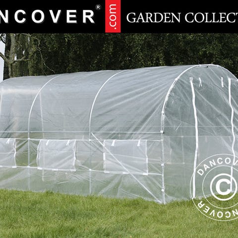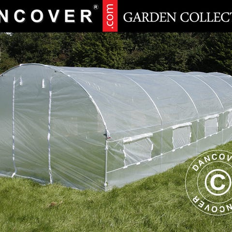 Polytunnel drivhus med perfekte vækstbetingelser for alle slags planter – både frugter, grøntsager og blomster. Transparent materiale, 6 vinduer med net på hver side og en dør i hver ende. Specielt udviklet dug sikrer optimale vækstbetingelser.