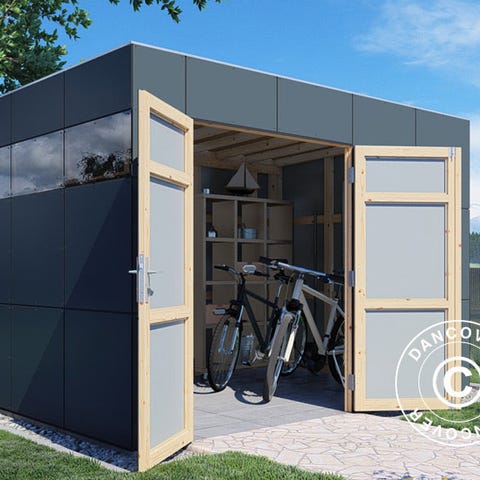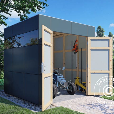 Redskabsskur i træ, Bertilo HPL 1, 2,3x2,28x2,3m, 5,24m², Antracit/Hvid