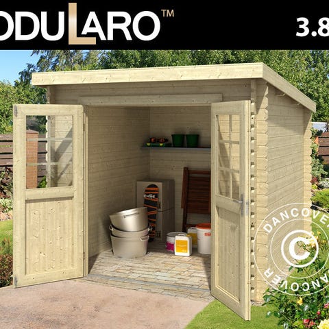 Solidt vægskur i stærkt og holdbart nordisk gran. Skuret er perfekt at bruge til opbevaring af haveredskaber og andet udstyr, så der er styr på det hele. Den store dobbeltdør giver nem adgang og kan aflåses (hængelås medfølger ikke). Bemærk venligst: Skuret bliver leveret med gulv men uden tagpap! Modularo® er et moderne livsstilsbrand, der tilbyder holdbare kvalitetsprodukter i massivt træ og et tidssvarende design, som kan være med til at gøre dit haveliv endnu skønnere.
