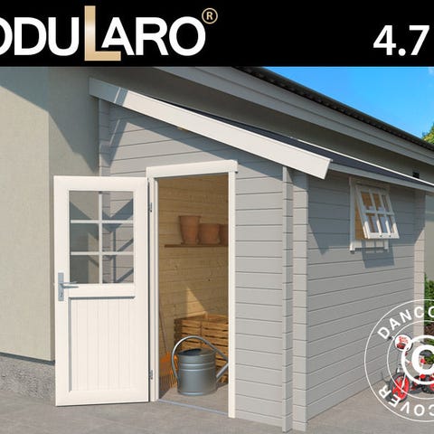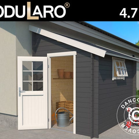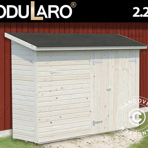 Solidt vægskur i stærkt og holdbart nordisk gran. Skuret er perfekt at bruge til opbevaring af haveredskaber og andet udstyr, så der er styr på det hele. Vinduet sørger for naturligt lys inde i skuret om dagen, og den store dobbeltdør giver nem adgang og kan aflåses (hængelås medfølger ikke). Bemærk venligst: Skuret bliver leveret med gulv men uden tagpap! Modularo® er et moderne livsstilsbrand, der tilbyder holdbare kvalitetsprodukter i massivt træ og et tidssvarende design, som kan være med til at gøre dit haveliv endnu skønnere.