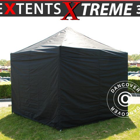 Foldetelt FleXtents Xtreme 60 – markedets stærkeste, professionelle foldetelt, der kan sættes op på blot 60 sekunder. Inklusiv jordspyd og praktisk transporttaske med hjul. Et meget fleksibelt og holdbart foldetelt.