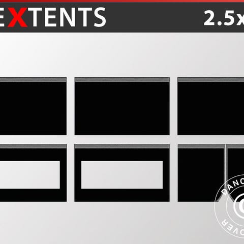Sættet inkluderer: 3 Standard sidevægge, 2 Panorama vindue sidevægge & 1 sidevæg med lynlås.