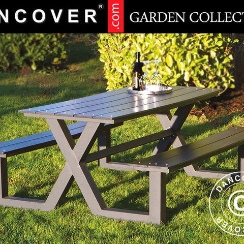 Bord/bænkesæt m/ryglæn, nonwood, 1,75x1,86m, Sort/Antracit