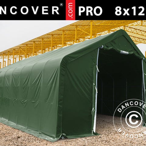 Stærkt og fleksibelt lagertelt til professionel brug. Kraftig 600 g/m² PVC-dug og 70 mm stærkt stålstel. Perfekt til mindre lager til materialer, køretøjer m.m. Stor åbning sikrer nem adgang bl.a. med truck. Det hvide ovenlys skaber mere lys inde i telthallen om dagen.