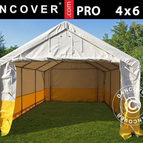 Lagertelt, arbejdstelt PRO 5x10m, PVC, Hvidt/gult, Flammehæmmende
