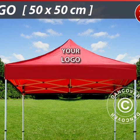 Hvorfor ikke gå hele vejen og forvandle din stand til et reklameskilt, der kan ses fra den anden ende af pladsen. Skil dig ud fra mængden til events med logo-tryk på foldeteltets tag dug.