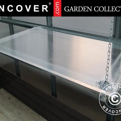 Ekstra stærk aluminiumshylde til drivhus. Hylden kan bære op til 40 kg og kan nemt installeres ved hjælp af de medfølgende beslag. Det er nemt at flytte hylden, hvis man får behov for det. Brug den stærke og holdbare drivhushylde til opbevaring af alt fra redskaber og frø til poser med jord, gødning og andre ting til haven m.m.