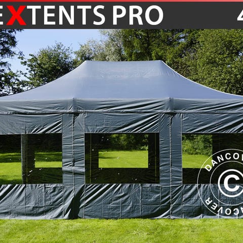 Foldetelt FleXtents PRO 4x6m Sort, inkl. 8 sider