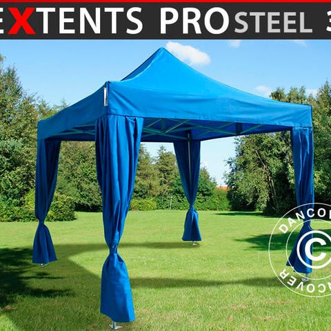Foldetelt FleXtents PRO Steel 3x3m Grøn, inkl. 4 pyntegardiner