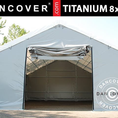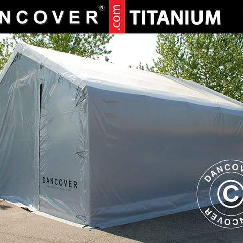 Telthal Titanium til store køretøjer, både, maskineri, varer, materialer og anden form for gods. Den rummelige og solide telthal har et 600 g/m2 flammehæmmende PVC cover, varmgalvaniseret stålramme og ekstra højde, som giver ekstremt meget plads til stort set alt, som du gerne vil opbevare på en sikker og professionel måde.