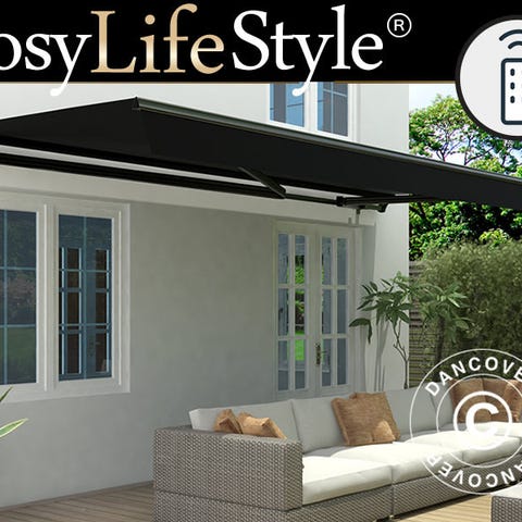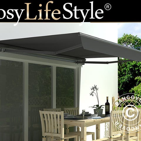 Markise m/fjernbetjening, 3,95x2,5m, Grå/Gråt stel