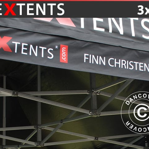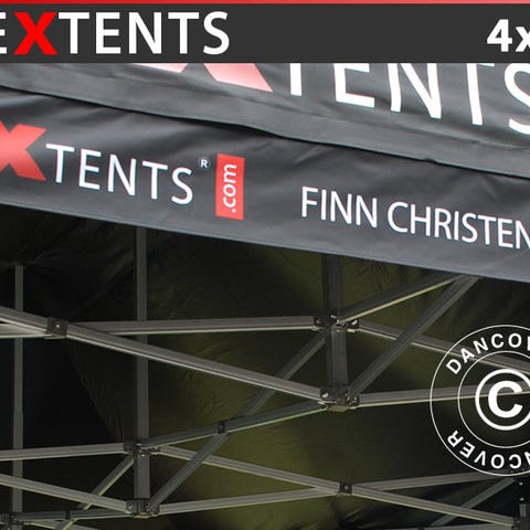 Banner med dit individuelle tryk til FleXtents® foldetelt 4-m serien. Brug banneret til et generelt budskab eller et særligt budskab målrettet et bestemt event. Banneret er nemt at sætte op ved hjælp af velcro-strips og kan skiftes ud på få sekunder.