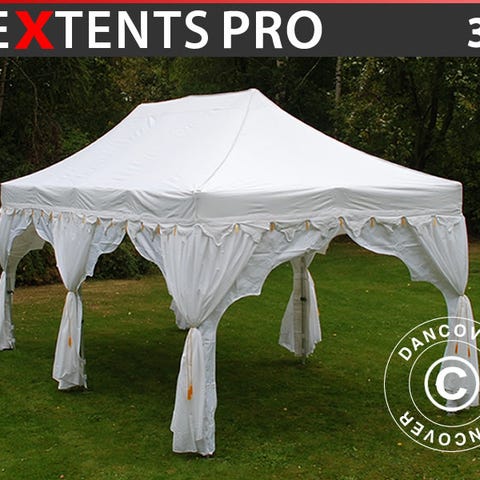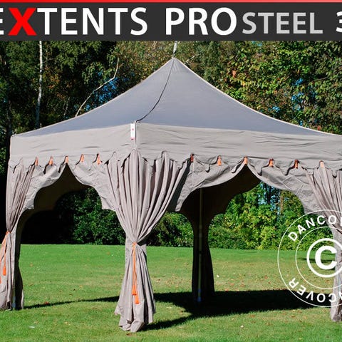 Markedets stærkeste foldetelt FleXtents PRO Steel med smukke og eksotiske detaljer. Den østerlandske frise med kvaster tilføjer et romantisk look og gør dette elegante foldetelt perfekt til særlige begivenheder og events.