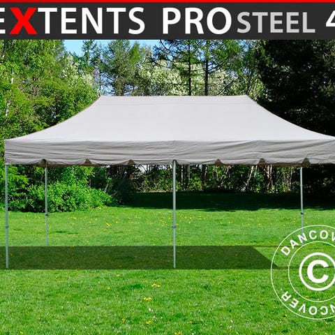 Foldetelt FleXtents PRO ”Peaked” 4x8m Latte, inkl. 6 sidevægge og 6 pyntegardine