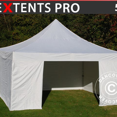 Foldetelt FleXtents PRO er et foldetelt i høj professional kvalitet med nem opsætning på bare 60 sekunder. Inkl. 6 sider, jordspyd og en kraftig praktisk taske med hjul. Fleksibelt, funktionelt og holdbart foldetelt.
