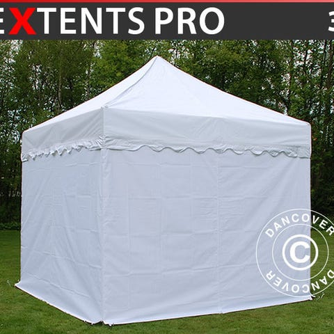 Foldetelt FleXtents PRO er et foldetelt i høj professional kvalitet med smukke tungekanter og nem opsætning på bare 60 sekunder. Inkl. 6 sider, jordspyd og en kraftig praktisk taske med hjul. Fleksibelt, funktionelt og holdbart foldetelt.