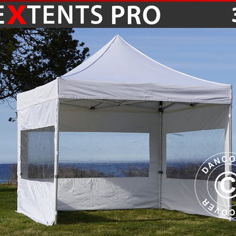 Foldetelt FleXtents PRO er et foldetelt i høj professional kvalitet med nem opsætning på bare 60 sekunder. Inkl. 6 sider, jordspyd og en kraftig praktisk taske med hjul. Fleksibelt, funktionelt og holdbart foldetelt.