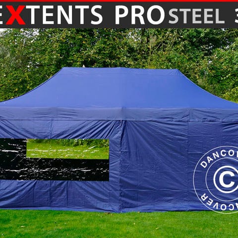 Foldetelt FleXtents PRO Steel 3x6m Blå, inkl. 6 sider