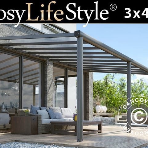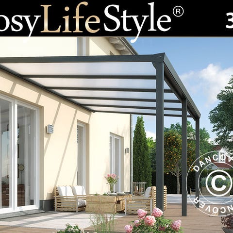 Terrasseoverdækning Easy m/polycarbonattag, 3x6m, Antracit