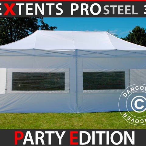 Foldetelt FleXtents PRO Steel 3x3m Hvid, inkl. 4 sider