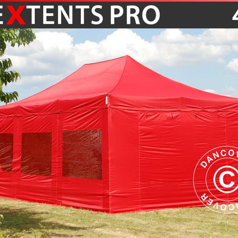 Foldetelt FleXtents PRO Steel er et foldetelt i høj professional kvalitet med nem opsætning på bare 60 sekunder. Fleksibelt, funktionelt og holdbart foldetelt - Inkl. 6 sider. Transparent tagdug med hvid valance.