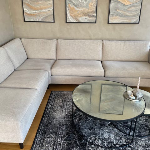 Hjørnesofa med chaiselong, i farven Palermo White.