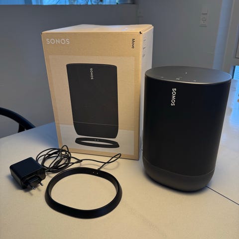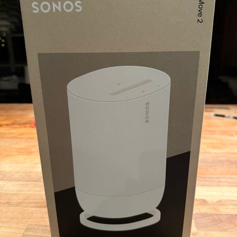 Sonos Move 2 trådløs højttaler i sort. Bærbar højttaler med indbygget batteri, der kan bruges både inde og ude. Understøtter trådløs afspilning via Wi-Fi og Bluetooth. Højttaleren kan integreres i et Sonos multiroom-system og styres via Sonos-appen. Velegnet til musik, radio og anden lydafspilning i hjemmet eller på farten.