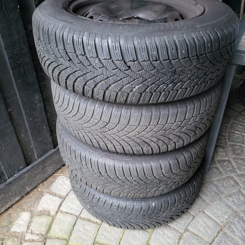 4 stk 17" vinterdæk på alufælge,Bridgestone hhv 2 med 3,5 og 2 med 5,5 mønster.